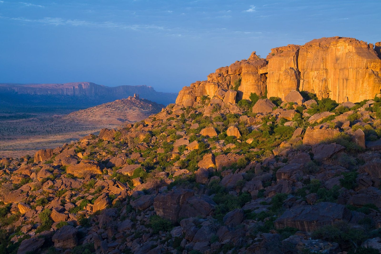 Les randonnées sur les falaises de Bandiagara offrent une expérience spectaculaire au cœur du pays Dogon. En suivant les sentiers escarpés, les voyageurs découvrent des villages troglodytiques accrochés à la paroi, des greniers à mil centenaires et des grottes sacrées chargées d’histoire. Les panoramas sur les plaines sablonneuses et les formations rocheuses, surtout au lever ou au coucher du soleil, sont inoubliables. Guidés par des habitants dogon, les visiteurs apprennent les légendes, les rites ancestraux et l’architecture unique de cette civilisation. Entre nature grandiose et immersion culturelle, la randonnée sur les falaises de Bandiagara est l’une des plus belles aventures qu’offre le Mali.